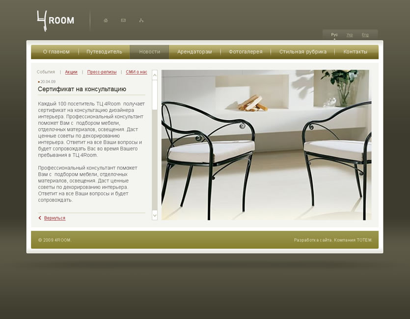 Сайт для первого в Украине профессионального торгового центра мебели декора и интерьера.