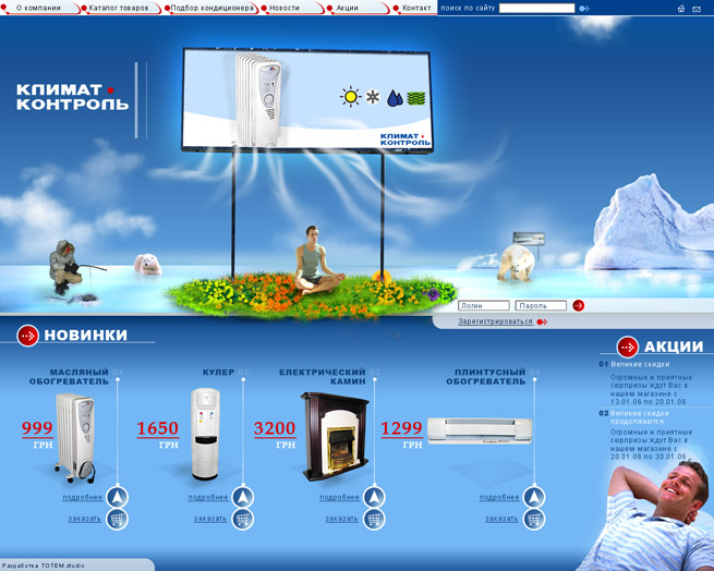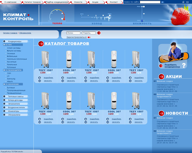 Как и полагает быть достойному Интернет магазину, сайт «Климат-контроль» прекрасно функционален, прост в использовании, с удобной навигацией.