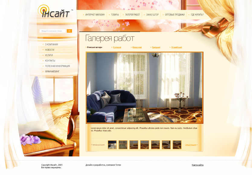 Для ЗАО «Текстиль Дизайн Компани», которая работает на рынке текстильной продукции Украины под торговой маркой «Инсайт», наша компания разработала ресурс по продаже и продвижению своей продукции в Интернет.