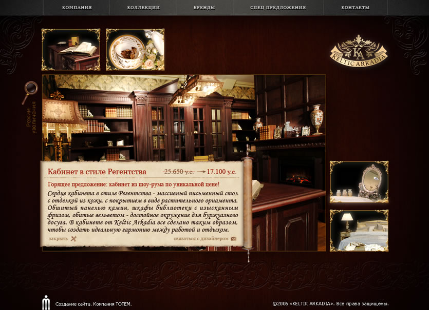 Для отображения древней и богатой культуры предметов обстановки «Keltic Arkadia», а также для произведения должного эффекта, нами было решено создать сайт в лучших традициях древних кельтов.