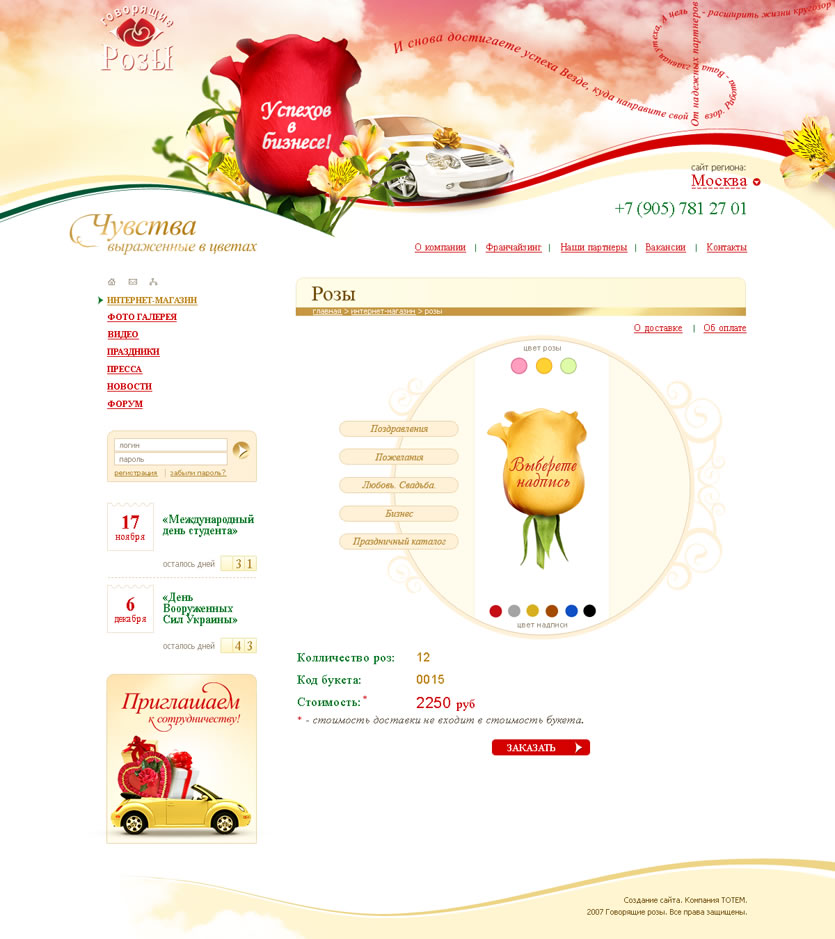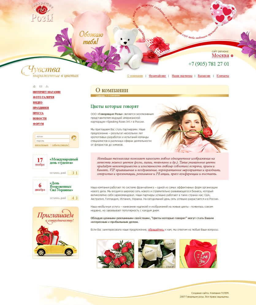 Эксклюзивный представитель ведущей американской корпорации «Speaking Roses Int.» в России