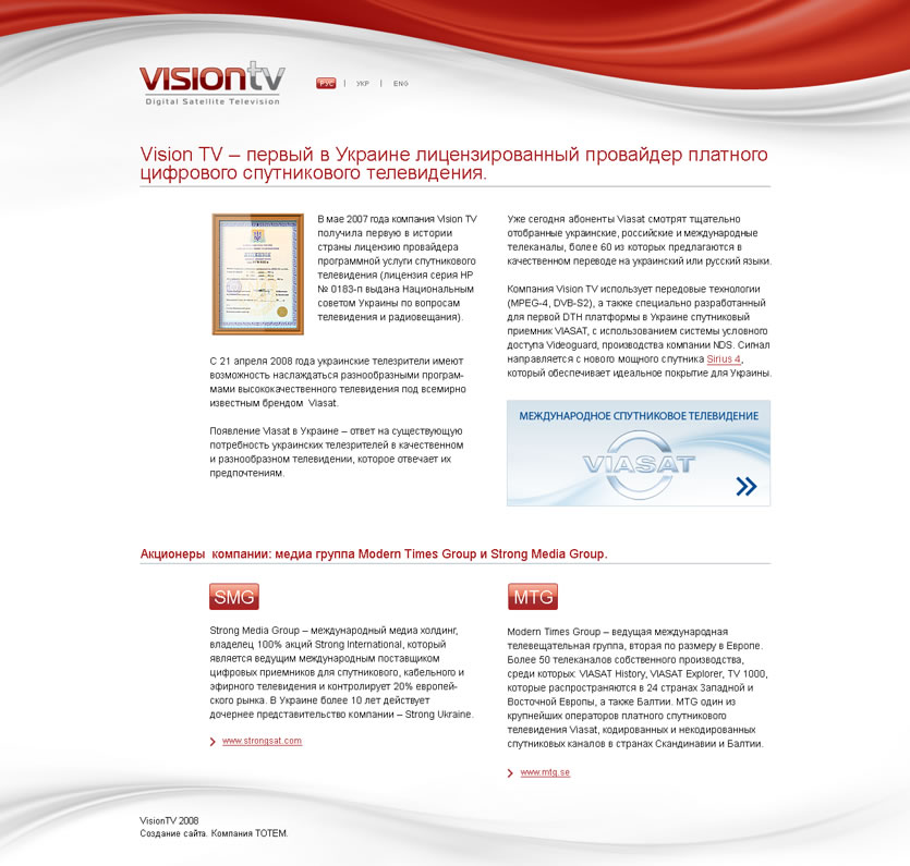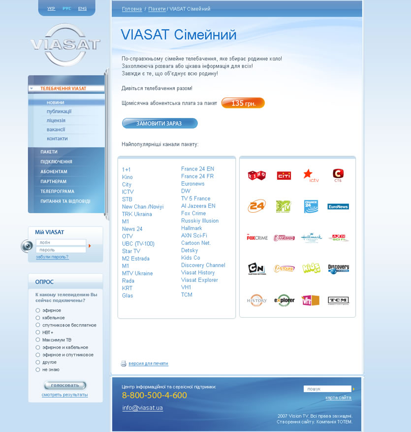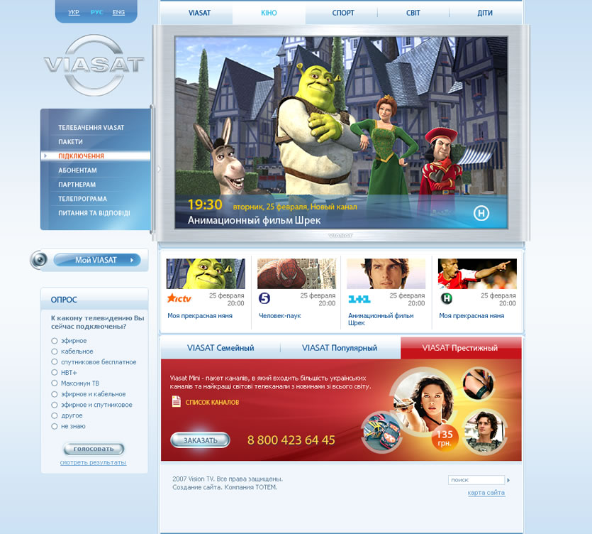 Стильный дизайн, многофункциональная телепрограмма, оплата услуг он-лайн, динамичные и постоянно обновляемые анонсы программ и фильмов, весь этот функционал был разработан с целью выгодно донести до потребителя качество контента лучших украинских, российских и мировых телевизионных каналов, которые предоставляются компанией «VIASAT».